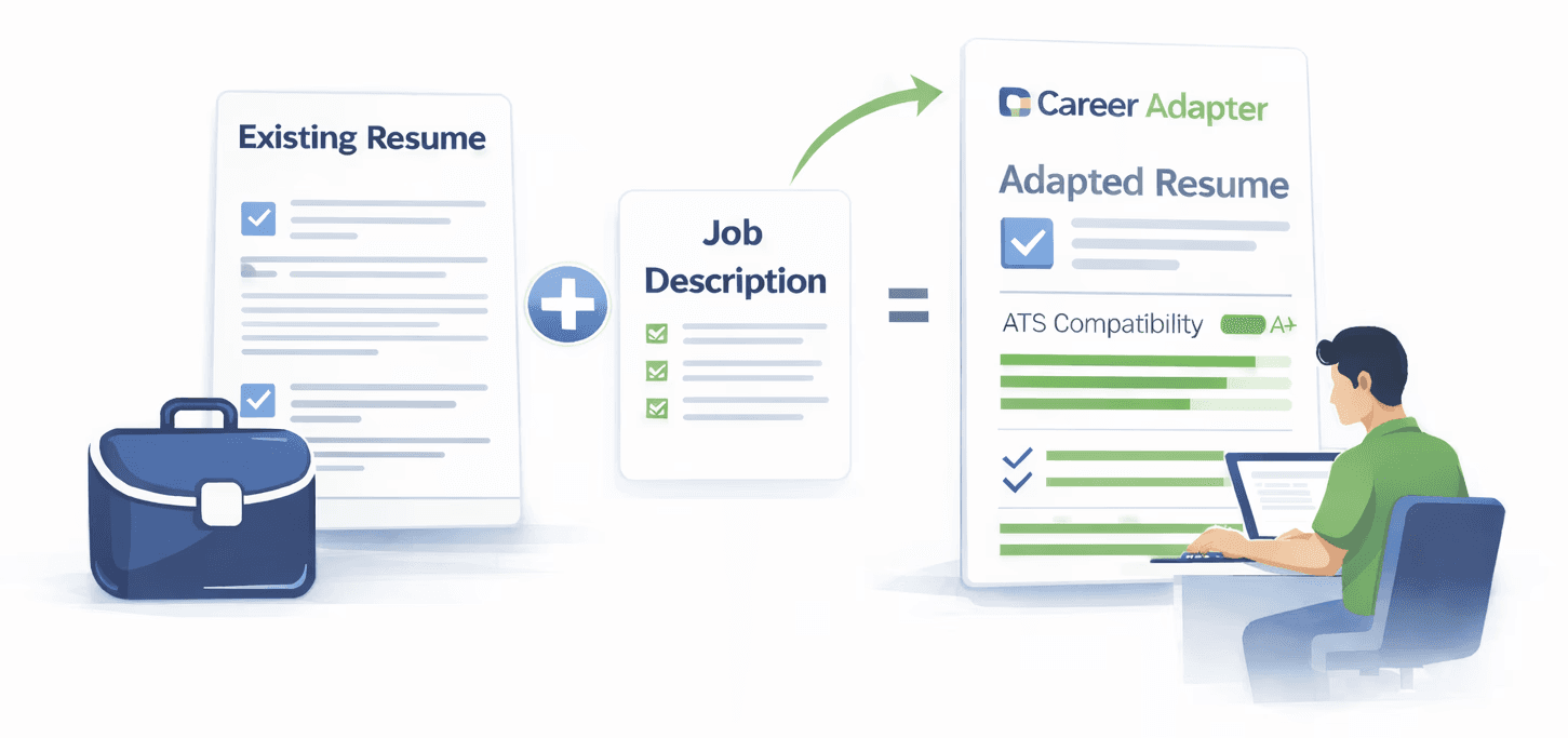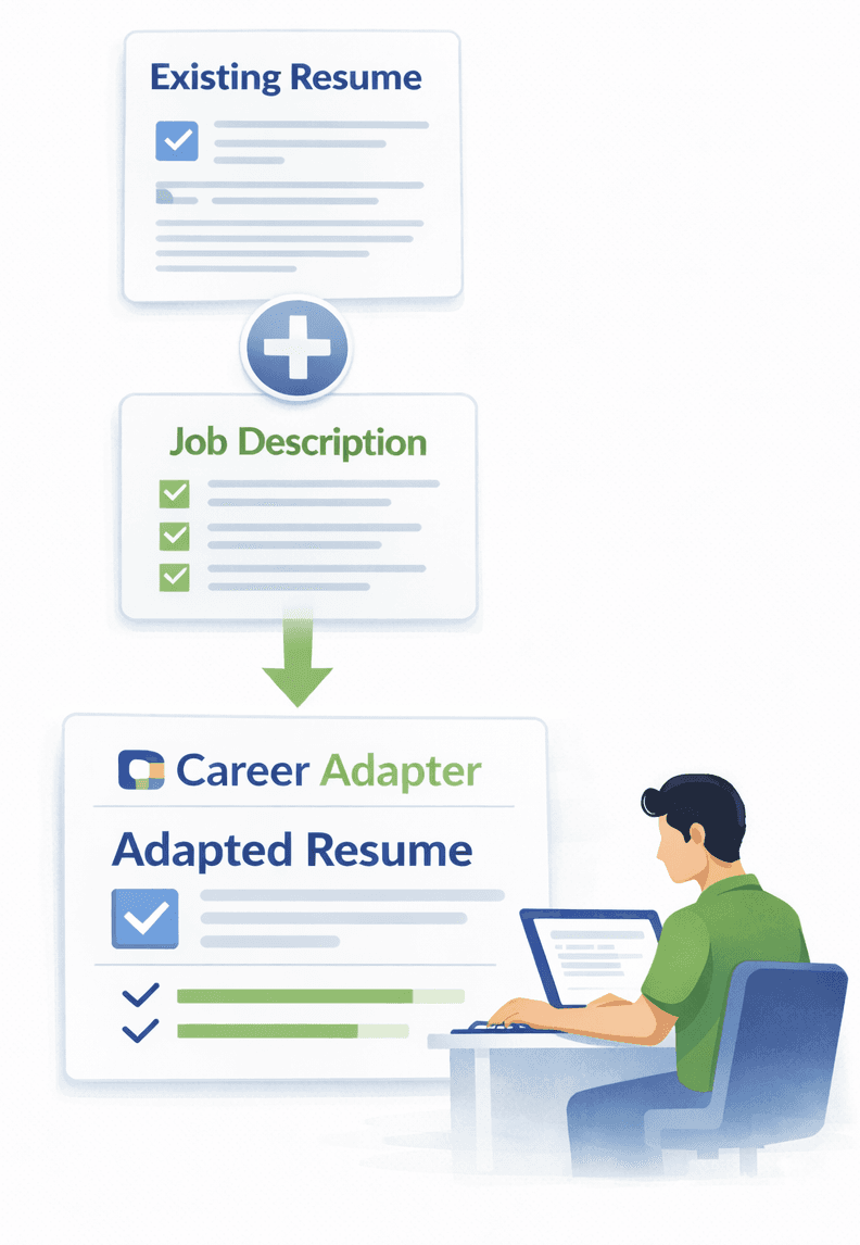 Career Adapter analyzes the job description and rewrites resume bullets to highlight the experience employers care about most.